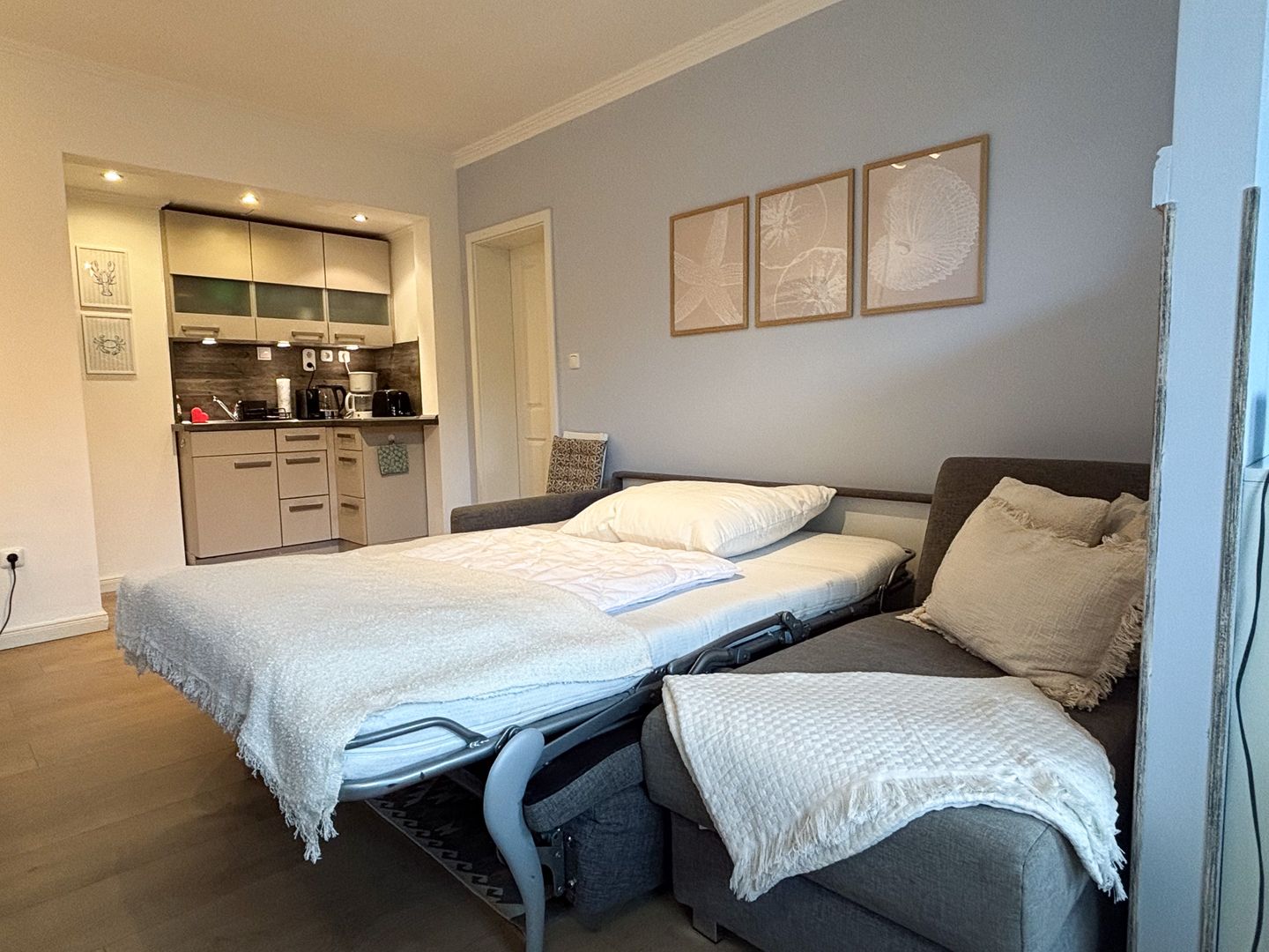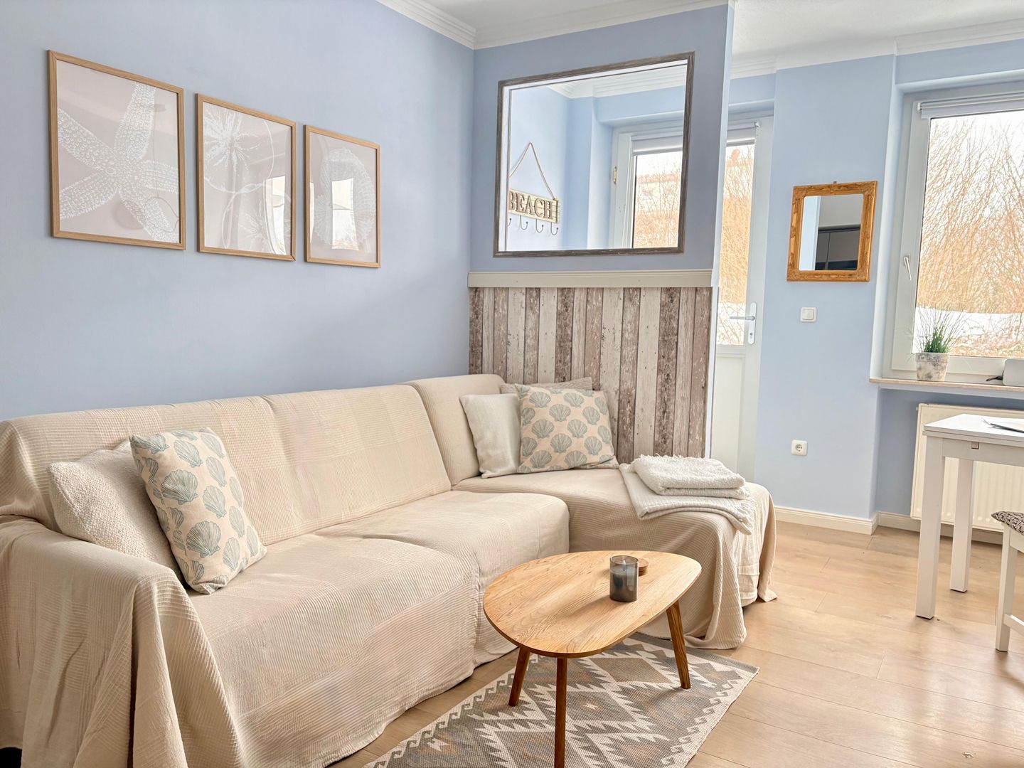 Die rund 37 m² große Wohnung bietet Platz für bis zu drei Gäste. Hier ist alles darauf ausgerichtet, dass Sie sich von der ersten Minute an zuhause fühlen: helle Farben, natürliche Materialien und durchdachte Details schaffen eine warme, einladende Atmosphäre.